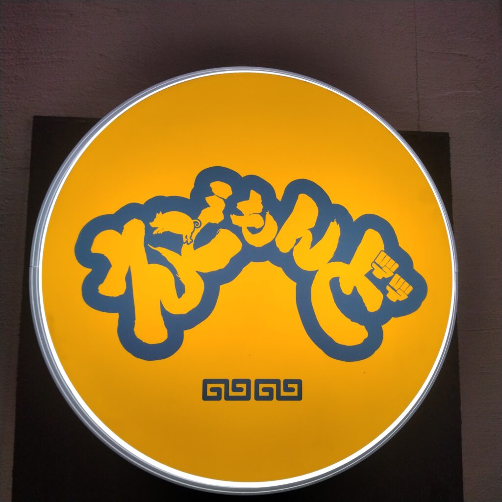 夕方にお店へ到着すると、まず目に入るのが印象的な黄色い丸い看板。