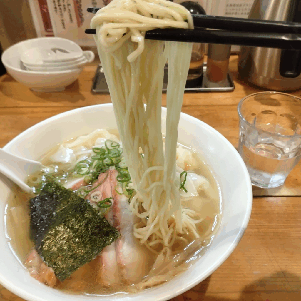 看板メニューの「雲呑麺(ワンタン麺)」は、魚介と動物系の旨味を丁寧に合わせた極上の黄金スープが特徴。見た目は澄んでいるのに、ひと口飲めば深いコクとまろやかさが広がり、まるで和食の出汁のような上品さを感じます。