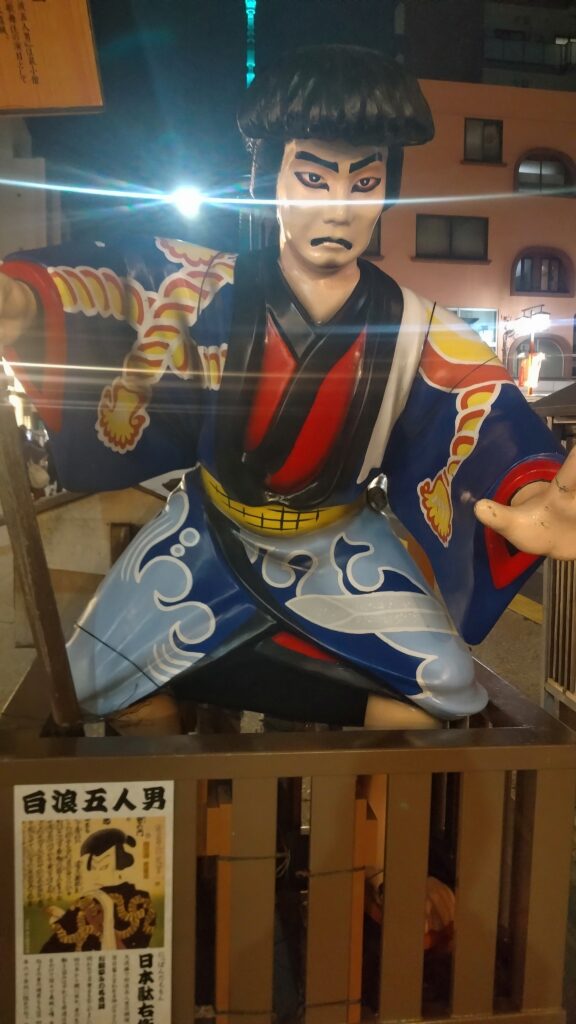 With its dynamic pose and kabuki-style costume, the statue looks like something straight out of an Edo-era theater. It’s the kind of spot that makes you pause and appreciate the historical atmosphere of the city.