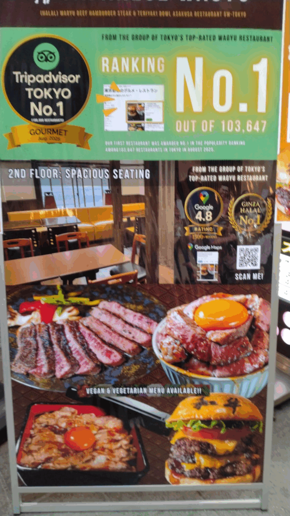 浅草でハラール対応の和牛を提供しているお店は貴重で、外国人観光客が思わず立ち止まって写真を撮るのも納得です。